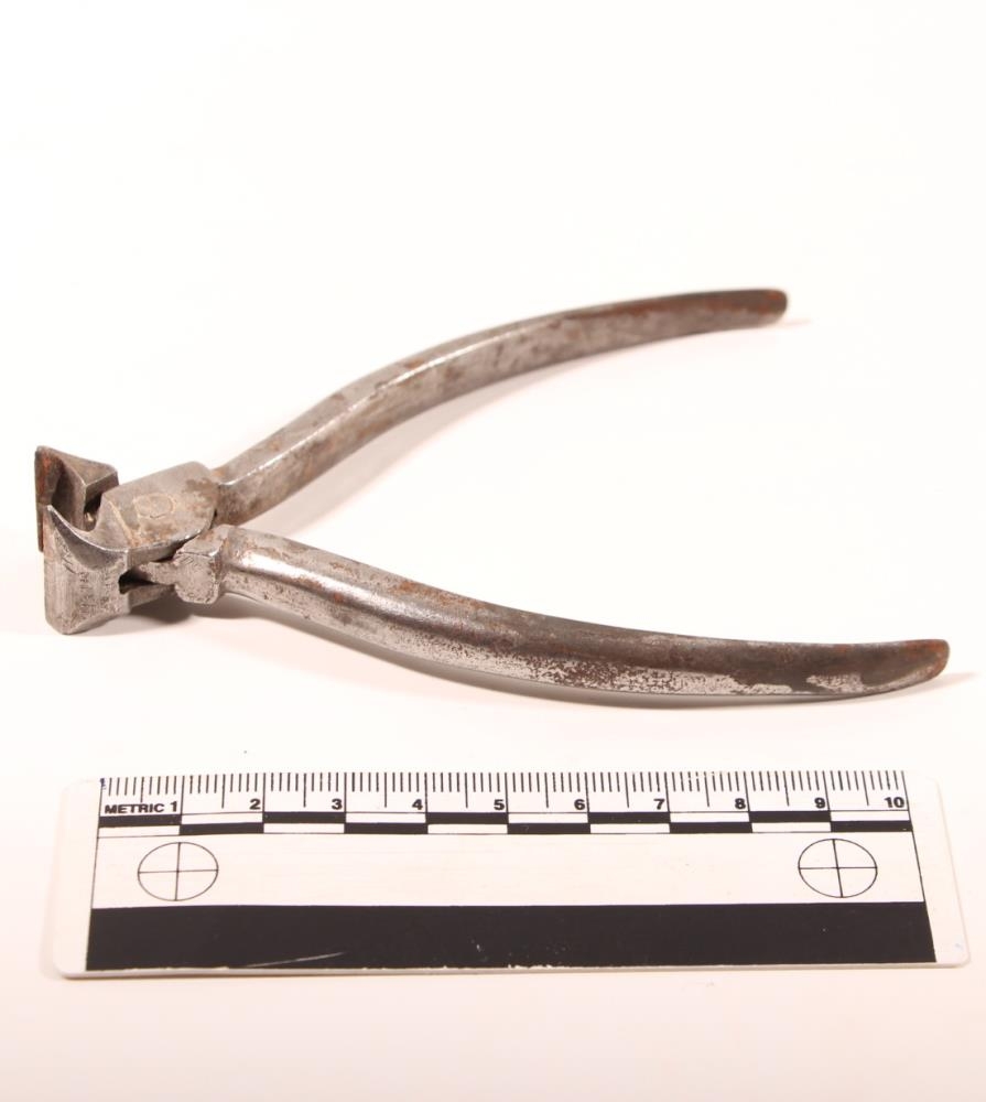 Aftakari (klípitöng) úr járni. Tangarnir eru flatir, falla saman og mynda smágöt sem taka á smáskrúfum (4 göt). Kjafturinn er bogadreginn, nokkuð gleiður. Frá Jörgen Fr. Michelsen, úrsmið á Sauðárkróki. Gefandi er Aage Michelsen frá Sauðárkróki.