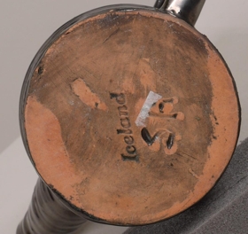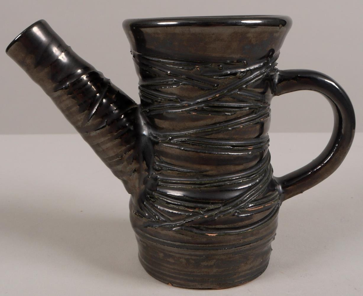Lítil rjómakanna. Glerungur er dökkur með málmáferð.