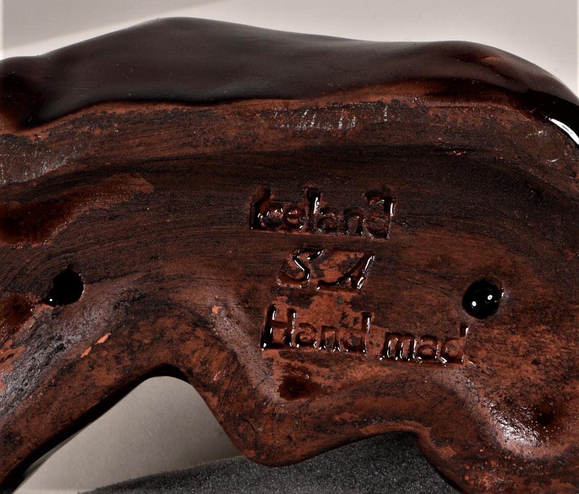 Stytta af íslenskum hundi. Glerungur brúnn. Merkt undir með stimpli.
