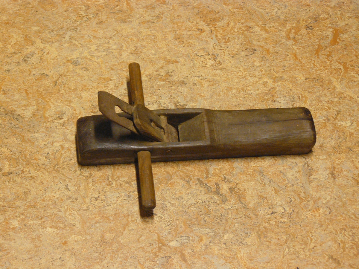 Tréhefill úr harðviði (ibenholt ?). Hefillinn var keyptur á uppboði í Grindavík sem var haldið á strandgóssi úr olíuskipinu Clam sem strandaði á Reykjanesi 28. febrúar árið 1950. Þessi munur er úr dánabúi Ingvars Júlíussonar frá Bjargi í Garði (1912 - 1992).