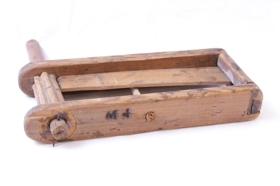 Heimasmíðaður og lengi notaður þegar þurfti að stugga hrossum úr engjum og þ.h. Ekki heill, helming spjaldsins vantar.