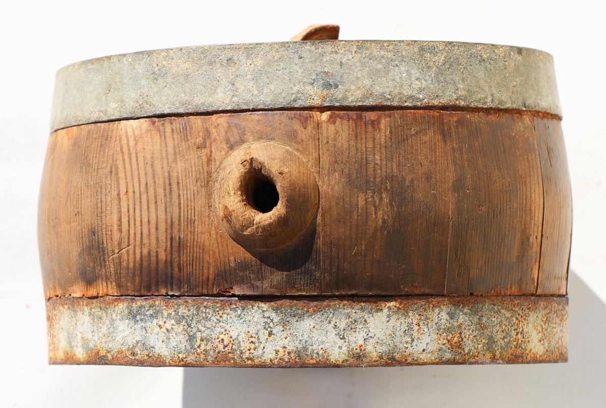 Legill, líklega úr brenni (beyki). Hann er 12 cm hár og belgurinn er um 21,5-22 cm í þvermál um miðju. Botninn er íhvolfur en lokið kúpt. Í miðju loki er gat, um 2,4 cm vítt og rauf skorin frá því í átt að lögginni. Tappinn er úr hvalbeini, 4,6 cm hár, efri hlutinn flatur en gagnskorinn og myndar eins og fjórða part úr hjóli, en neðri hlutinn er lítið eitt sporbaugóttur. Annað gat er á hlið með upphleyptri brún umhverfis. Tappann í það vantar. Legillinn er járngirtur; efri gjörðin er nýleg og úr galvaníseruðu járni, hin neðri er allryðguð. Brestur er í einum stafnum við gjörðina (neðri).