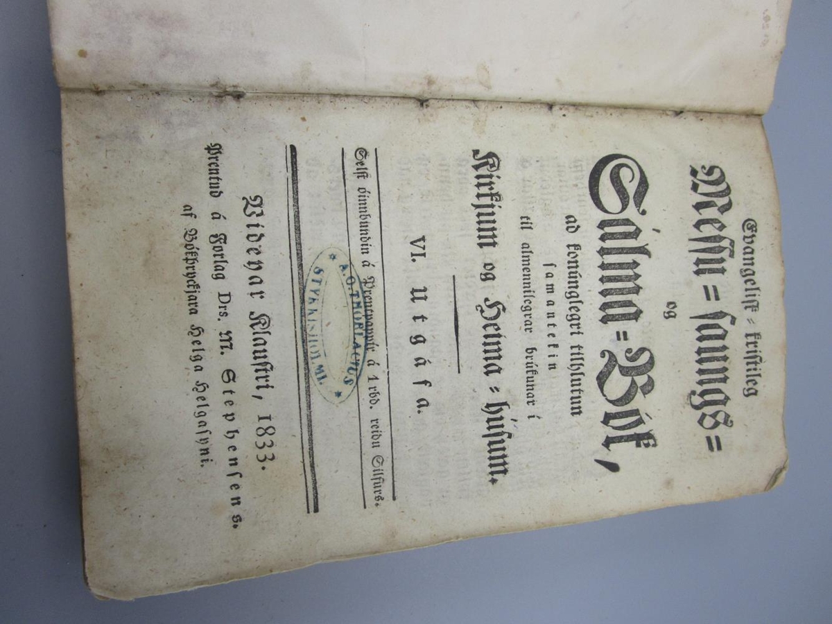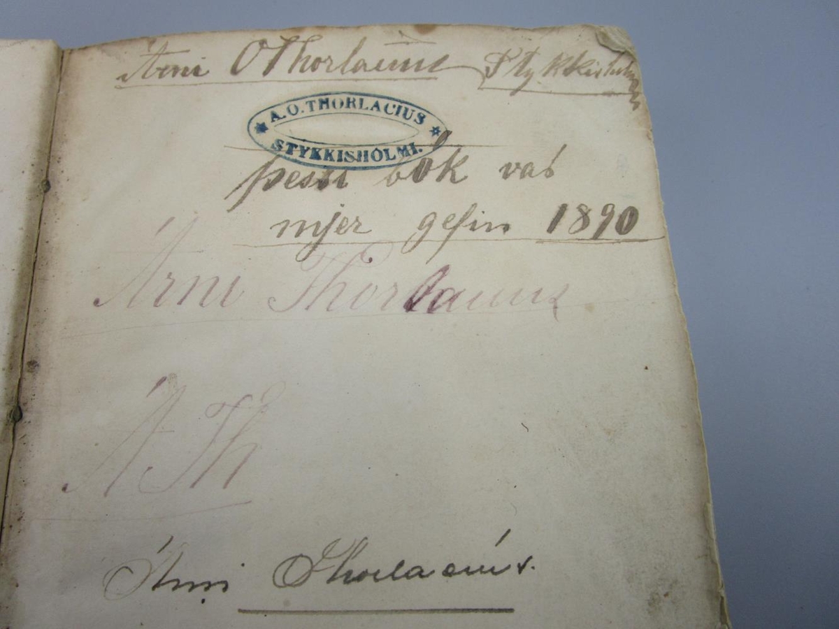 Sálmabók, Evengelish kristilegt messu söngs og sálmabók. Viðeyjarprent 1833 VI. útgáfa. Bókin er merkt Árna með stimpli hans og einnig stendur skrifað í hana: Þessi bók var mjer gefin 1890, Árni Thorlacius.