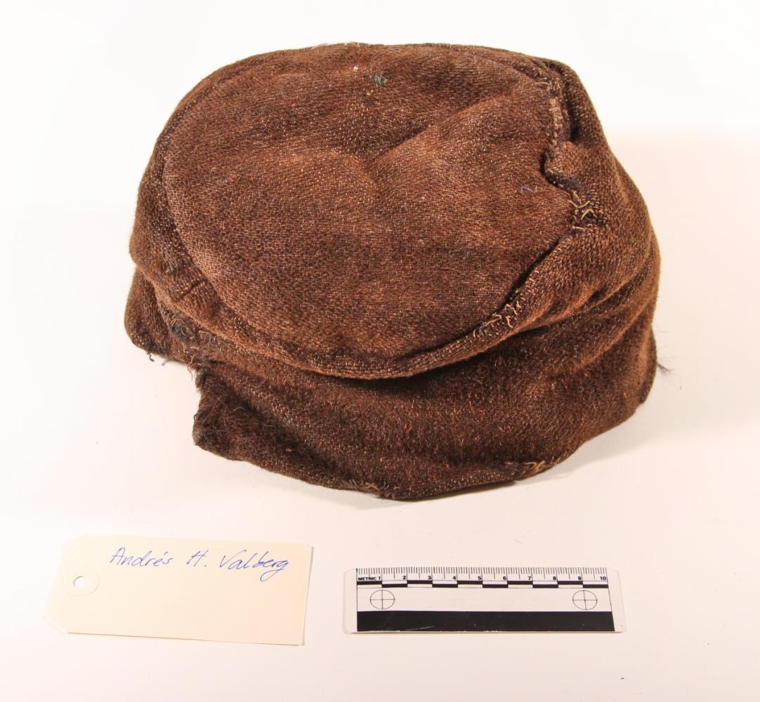 Húfa, kuldahúfa úr ull, heimaofnu efni, með svitaskinni af tófu. Dökkbrún, hringsniðin 15 cm. Í þvm. Hæð hliða er 15 cm. Fóðruð með dökkbrúnu bómullartaui. Tófuskinnið er brúnt. Kollurinn er kringlóttur. Um húfuna segir gefandi Andrés H. Valberg: „Húfan er frá föður mínum Hallgrími A. Valberg og var kuldahúfa hans í áratugi. Hún er frá afa mínum Jóni Andrési Björnssyni bónda á Reykjavöllum sem dó 1905, þá tók pabbi við henni, eitthvað notaði ég hana á Sauðárkróki”.