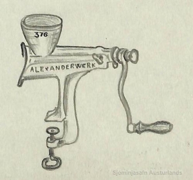 Svipuð og hakkavél í útliti, en nokkuð stærri og botninn í stokknum þar sem efnið kemur út úr vélinni hallar niður og myndar stút. Notuð til að pressa safa úr berjum.