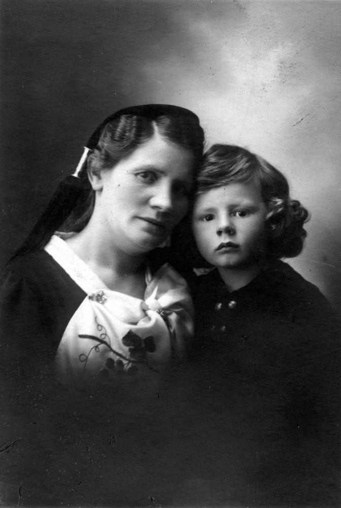 Frú Hólmfríður Jóhannsdóttir heldur á syni sínum Sigvalda.