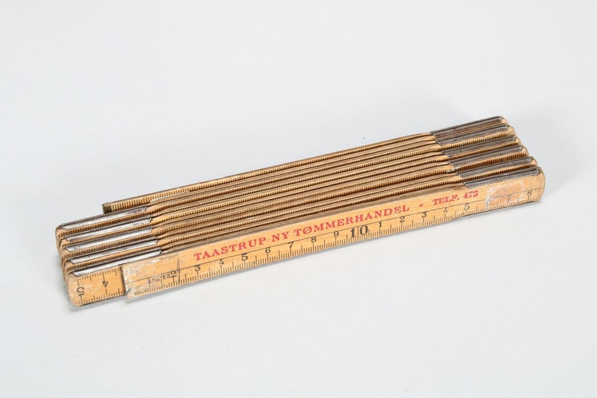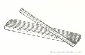 Óvenjulegur tommustokkur með centimetrum öðru megin en dönskum og enskum tommum hinum megin. Gefandi eignaðist stokkinn í æsku, á Leirhöfn á Melrakkasléttu.