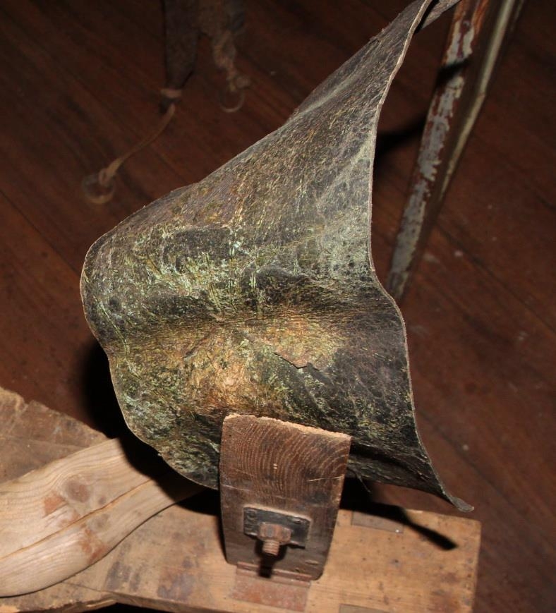 Skæði, blásteinslitað skóleður. Stærð 17 x 39 cm. Litað af Hallgrími A. Valberg, bónda í Kálfárdal um 1930. Skinnið er mátulega breitt í skó. Gefandi er Andrés H. Valberg.