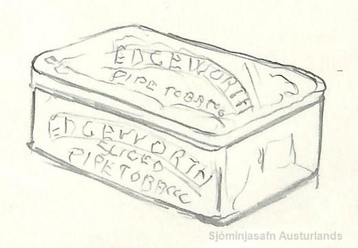 Blikkkassi með loki á hjörum, undan Edgeworth píputóbaki.
