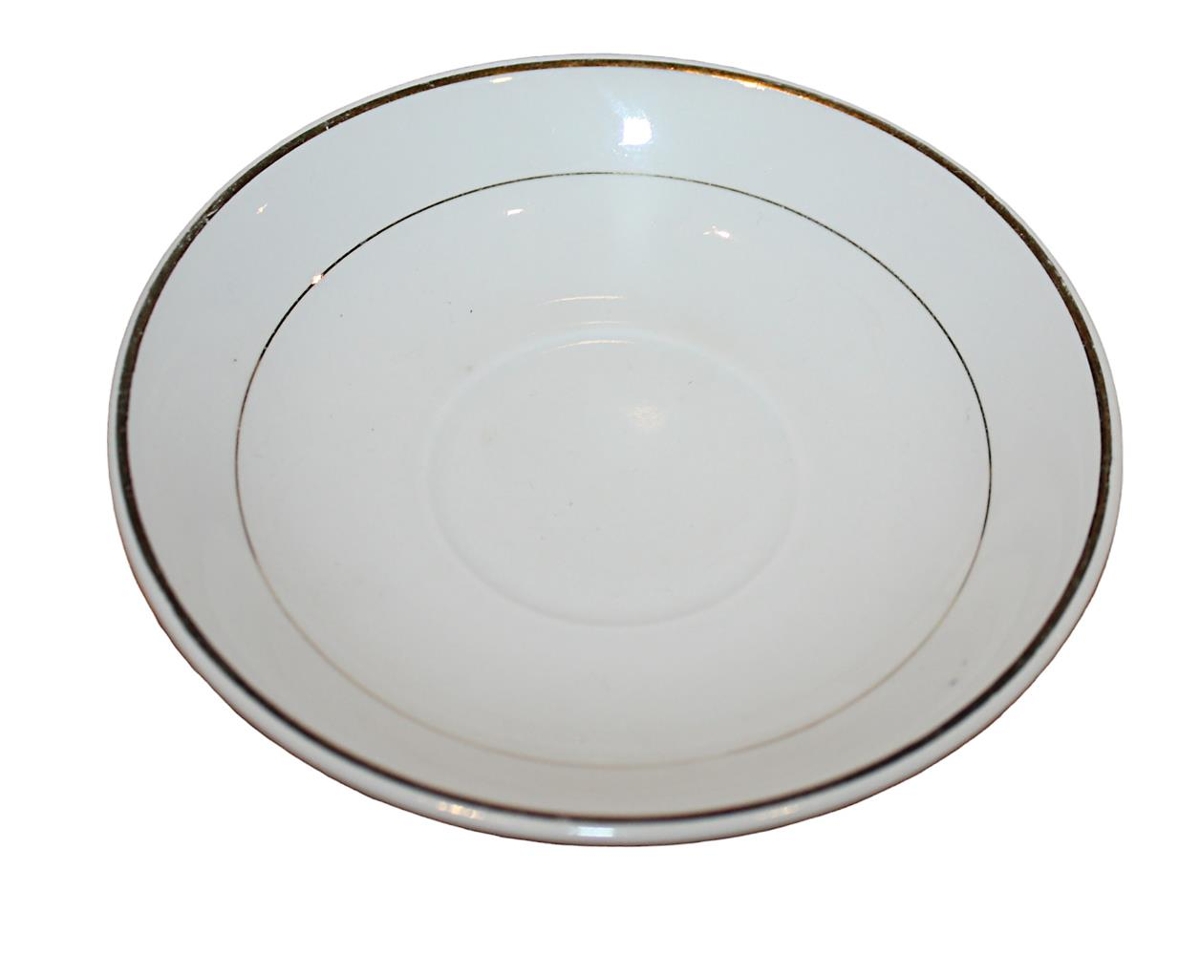 Hvít undirskál með giltum röndum