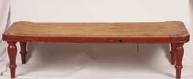 Setbekkur með stoppaðri dýnu, nú er dýnan laus en áður fyrr var hún áföst. Lengd bekksins er 133,5 cm og breiddin er 51 cm. Hæðin er 34 cm. Þetta er heimasmíðað fyrir utan fæturna, þeir eru renndir og hafa verið keyptir sér.