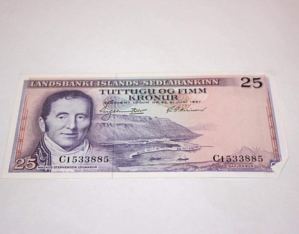 25 krónu seðill úr seðlaröð Landsbanka Íslands - Seðlabanka.