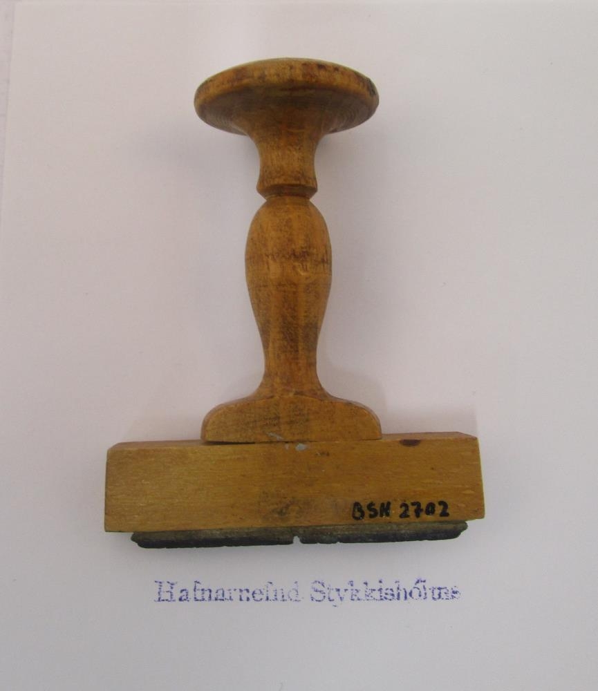 Ljós viðarstimpill með renndu haldi. Á honum stendur: Hafnarnefnd Stykkishólms. Munirnir BSH 2688 - BSH 2703 komu saman og voru notaðir á hreppsskrifstofu og síðar bæjarskrifstofu Stykkishólms.