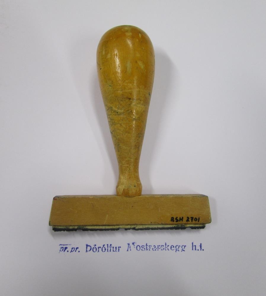 Ljós viðarstimpill sem á stendur: pr. pr. Þórólfur Mostraskegg h.f.. Munirnir BSH 2688 - BSH 2703 komu saman og voru notaðir á hreppsskrifstofu og síðar bæjarskrifstofu Stykkishólms.