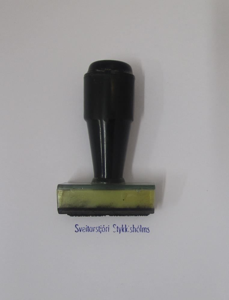 Svartur plaststimpill sem á stendur: SVEITARSTJÓRI STYKKISHÓLMS. Munirnir BSH 2688 - BSH 2703 komu saman og voru notaðir á hreppsskrifstofu og síðar bæjarskrifstofu Stykkishólms.