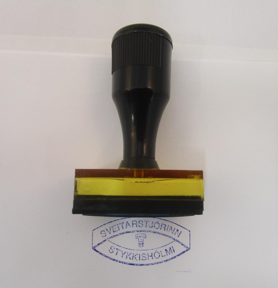 Svartur plaststimpill sem á stendur: SVEITARSTJÓRINN STYKKISHÓLMI. Munir BSH-2688 - BSH 2703 komu saman og voru notaðir á hreppsskrifstofu og síðar bæjarskrifstofu Stykkishólms. BSH 2689 og BSH 2690 eru eins.