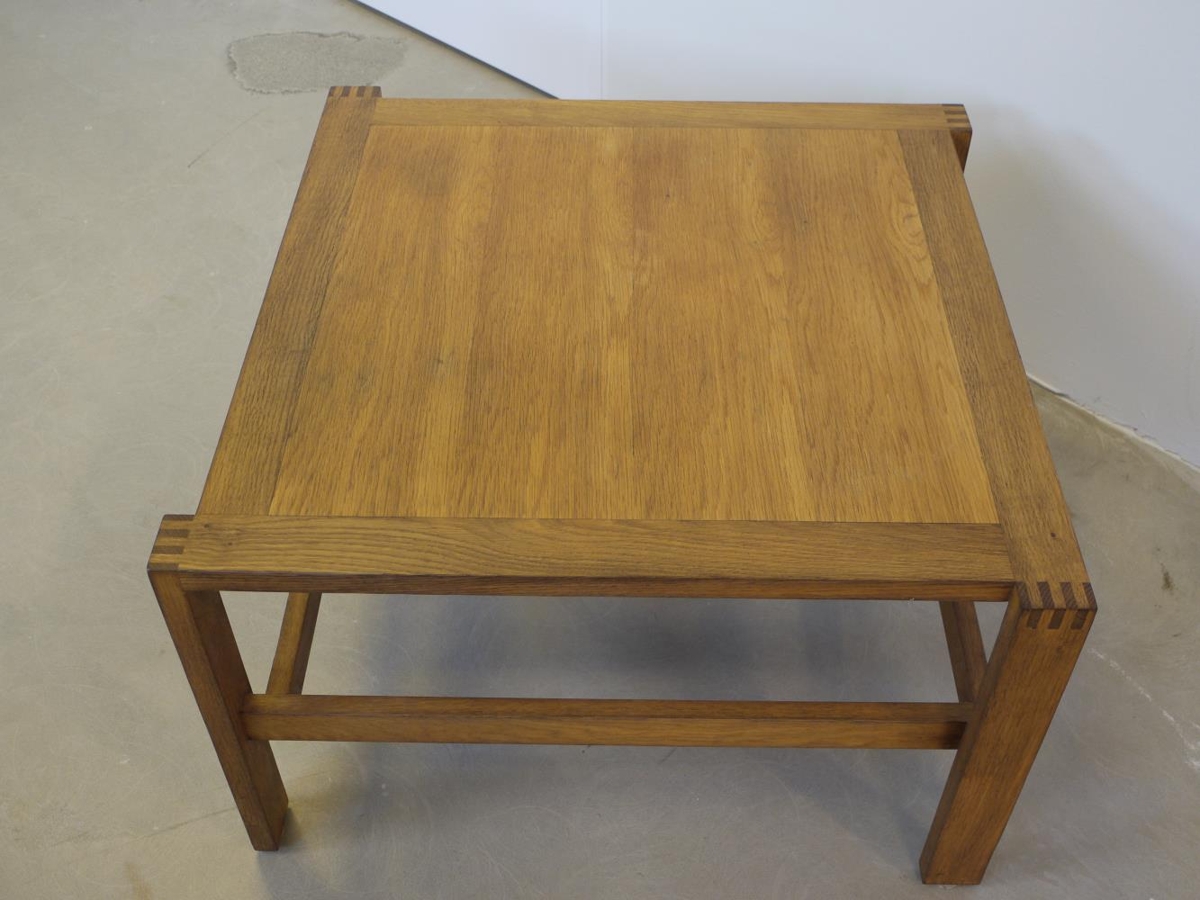 Sófaborð úr reyktri eik, smíðað árið 1960 á smíðaverkstæði Friðriks Þorsteinssonar. Fætur standa aðeins út fyrir borðplötuna og mynda með því hringhreyfingu í ferköntuðu borðinu. Frumgerð.