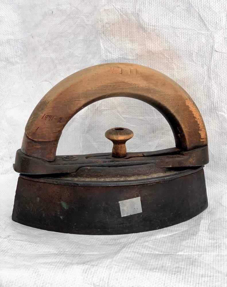 Pressujárn, með þeim fyrstu sem komu á markað. Eitt af tveimur. Úr búi Gunnlaugar Þórðardóttur frá Ólafsfirði.