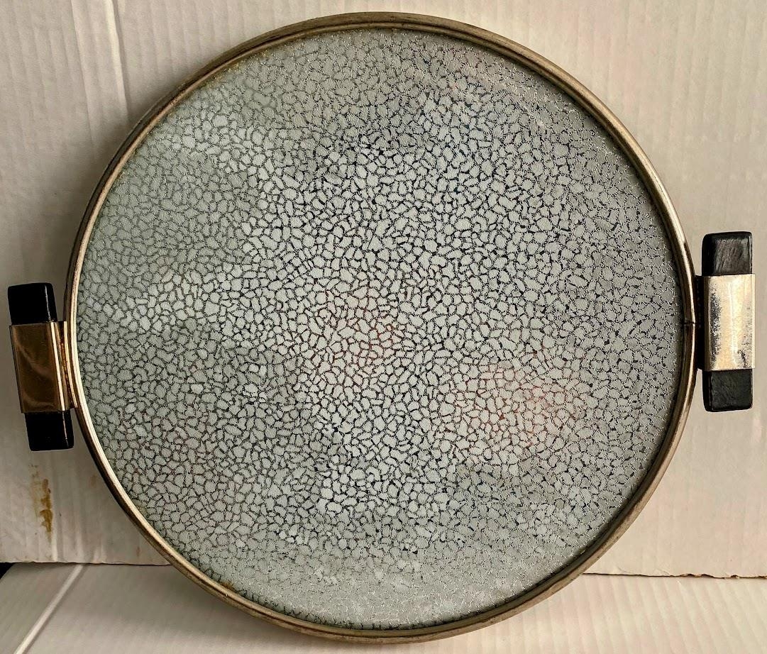 Kökufat, með gleri,24,5 cm í þvermál. Járnumgjörð er um fatið og á því eru svartar höldur. Óviss uppruni.