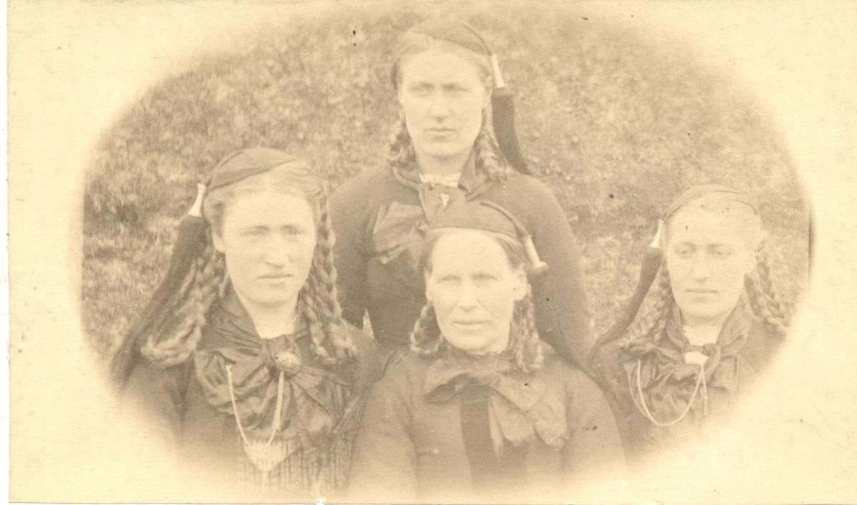 Katrín Ísleifsdóttir á Brúnum undir Eyjafjöllum ásamt dætrum sínum Guðnýju, Valgerði og ?.