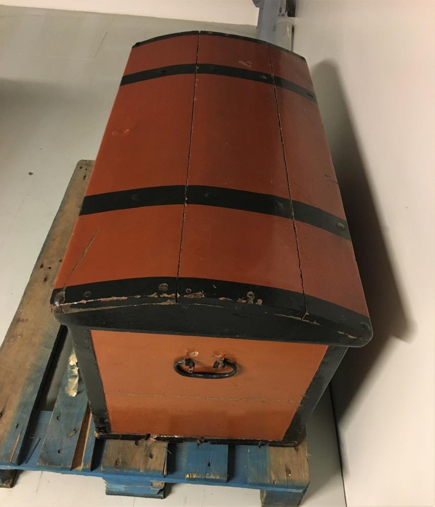 Fatakista með kúptu loki, virðist vera dönsk fatakista [ÞT]. Máluð rauðbrún með svörtum máluðum köntum og stöfum í ljósum lit og stendur Anno 1849 á framhlið. Innan í er hún í gulgrænum lit og með handraða. Kom frá Þingeyjarsýslu með Skúla Einarssyni. Var lengst af í búi Amalíu H. Skúladóttur og manns hennar Halls L. Hallssonar tannlæknis. Um 1940 endurmálaði Greta Björnsson kistuna.