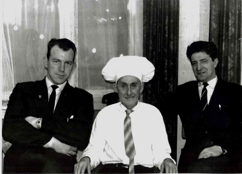 Elinberg Sveinsson,Vilhjálmur Kristjánsson og Víglundur Jónsson.Elinbergur var vélstjóri og starfaði lengi í Hraðfrystihúsi Ólafsvíkur . Vilhjálmur var sjómaður alla ævi og Víglundur var útgerðarmaður og fiskverkandi . Hann rak Hróa sem var stór vinnustaður . Við þekkjum ekki tilefni myndarinnar . Vilhjálmur var ævinlega kokkur meðan hann stundaði sjóinn .