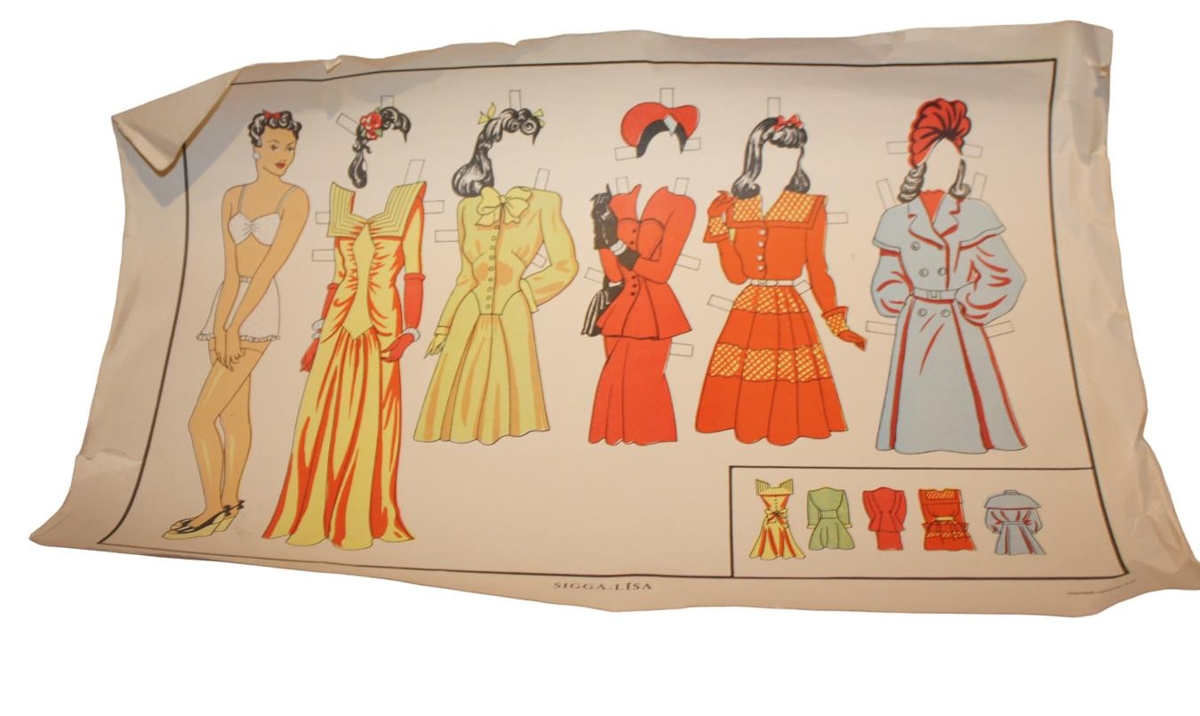 Sigga - Lísa, dúkkulísa og dúkkulísuföt á spjaldi. Útgefið af Leiftri í Reykjavík árið 1949.