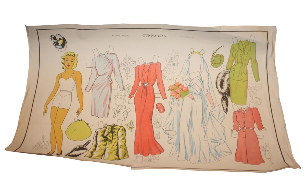 Gunna - Lísa, dúkkulísa og dúkkulísuföt á spjaldi. Útgefið af Leiftri í Reykjavík árið 1949.