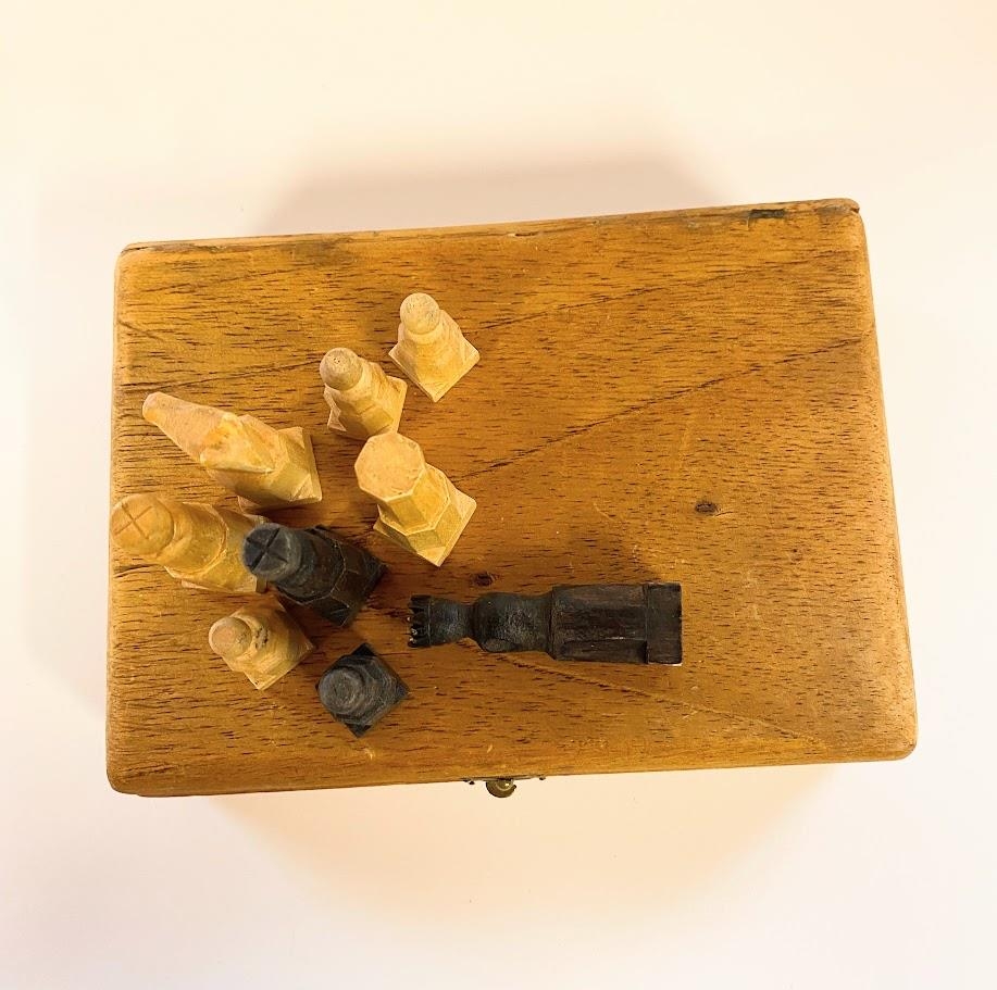 Manntafl smíðað snemma á 20.öld af Guðmundi Þorsteinssyni frá Lundi. Fundið og afhent frá Sjúkrahúsi Húsavíkur.