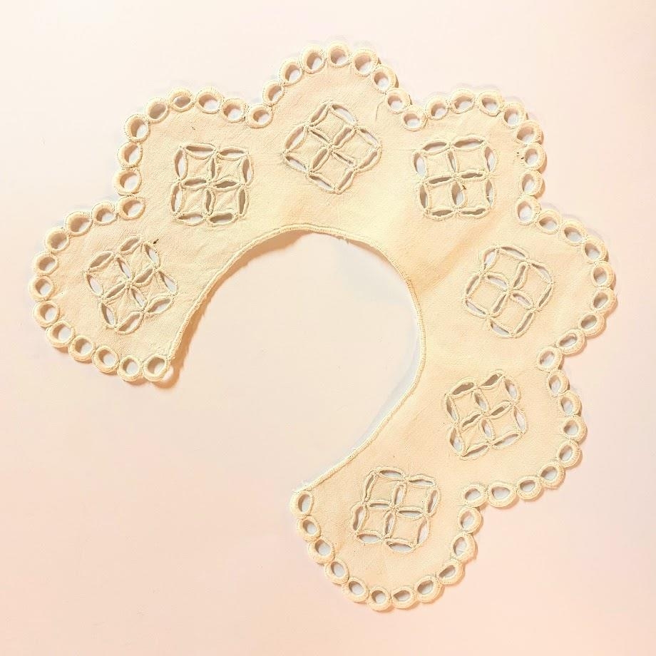 Barnakragi með vönduðum frönskum útsaumi. Saumaður af Friðbjörgu Jónsdóttur árið 1925.