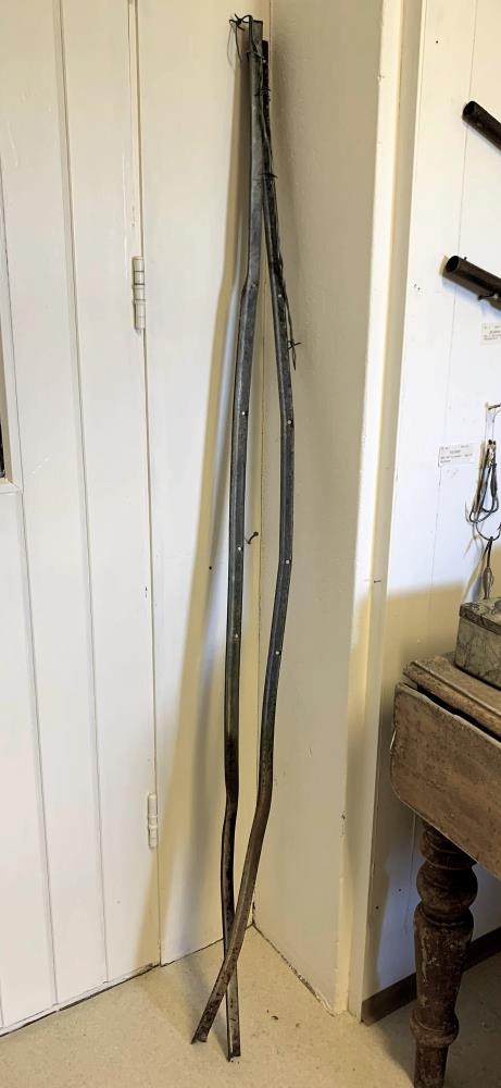 Girðingarstaurar, 2 stykki, úr járni. Úr hópi fyrstu girðingarstaura er bárust í Öxarfjörð snemma á 20. öld. Úr fórum Guðmundar á Ærlæk.