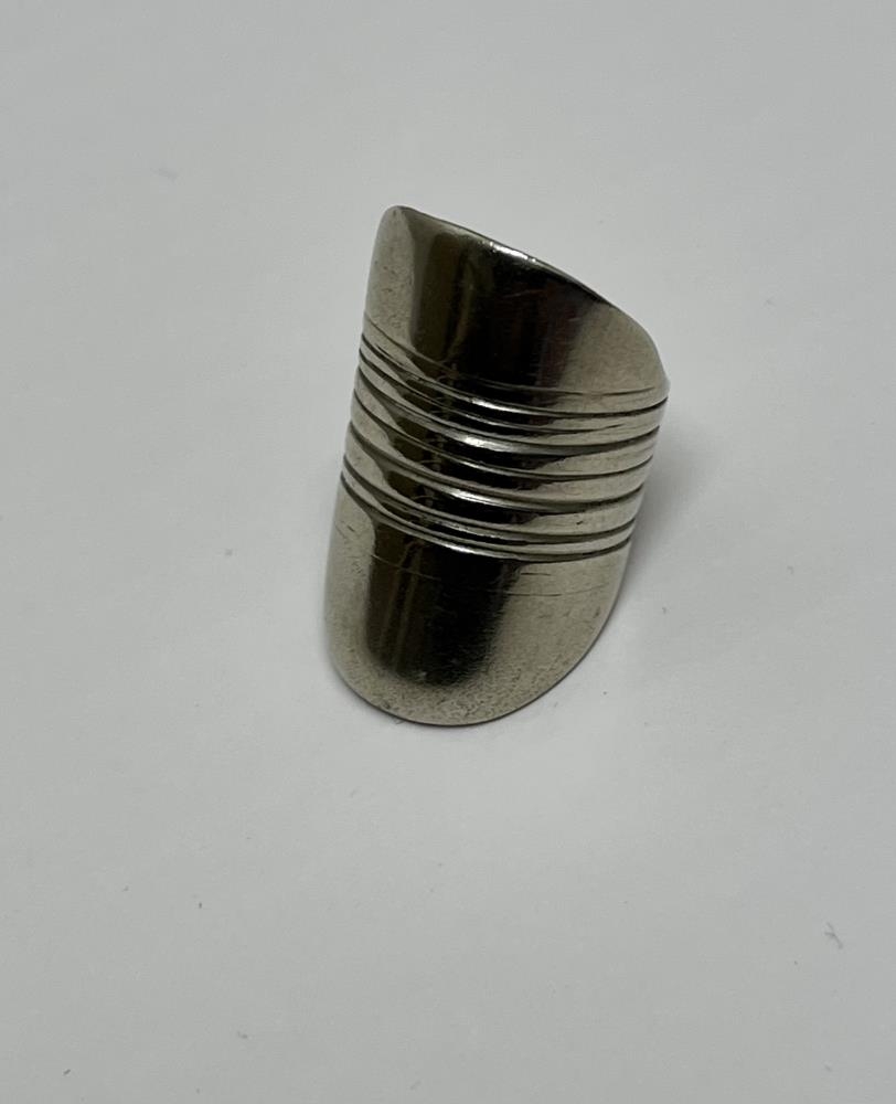 Saumahringur úr silfri, eigandi Björg Indriðadóttir, (settur á góm vísifingurs við nákvæmis saumavinnu)