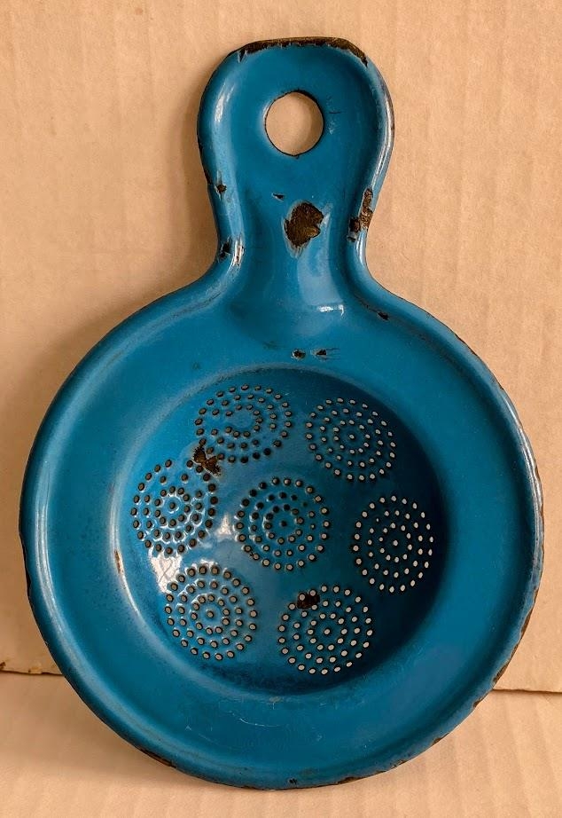 Tesía, blá, emeleruð, 12, 5 sm í þvermál. Úr búi Gunnlaugar Þórðardóttur ( f. 1894, d.1996 ), gefandi Þórunn dóttir hennar.