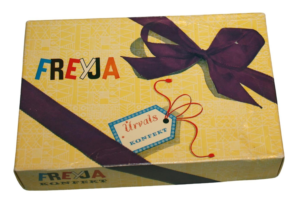 Merking á konfektkassa: Freyja konfekt - úrvals konfekt