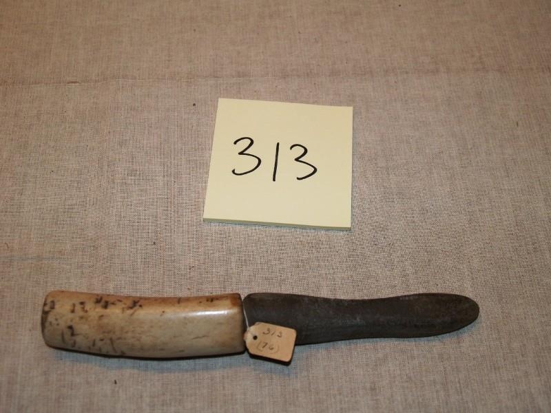 Skaftið er stórgripabein 9.5 cm langt og brýninu stungið í endann.