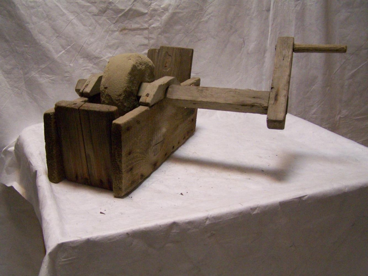 Hverfisteinn, lítill, handsnúinn. Gef. fann gripinn á eyðibýlinu Drangavík á Ströndum og kom honum í hús.