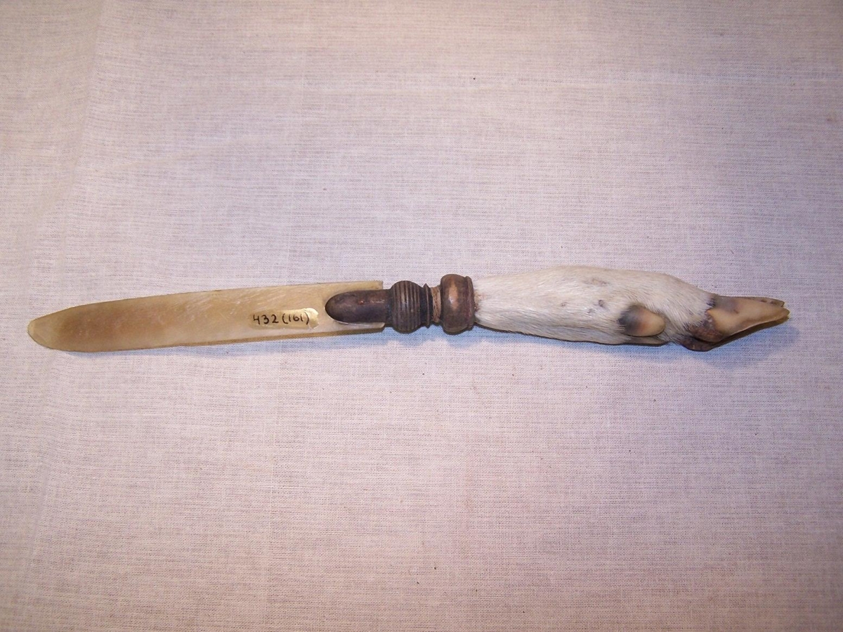 lengd 14.3 cm, br. 2 cm - fest í rennt tréskaft 5.5 cm langt. Í annan enda