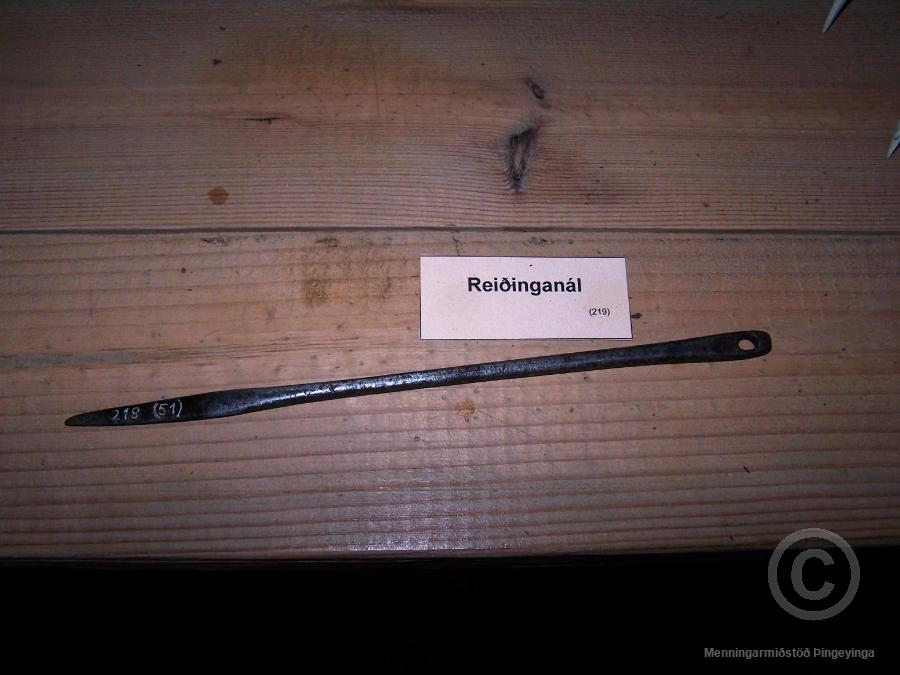 Nálin úr járni, 21 cm, þar af fjaðrirnar um 5 cm.