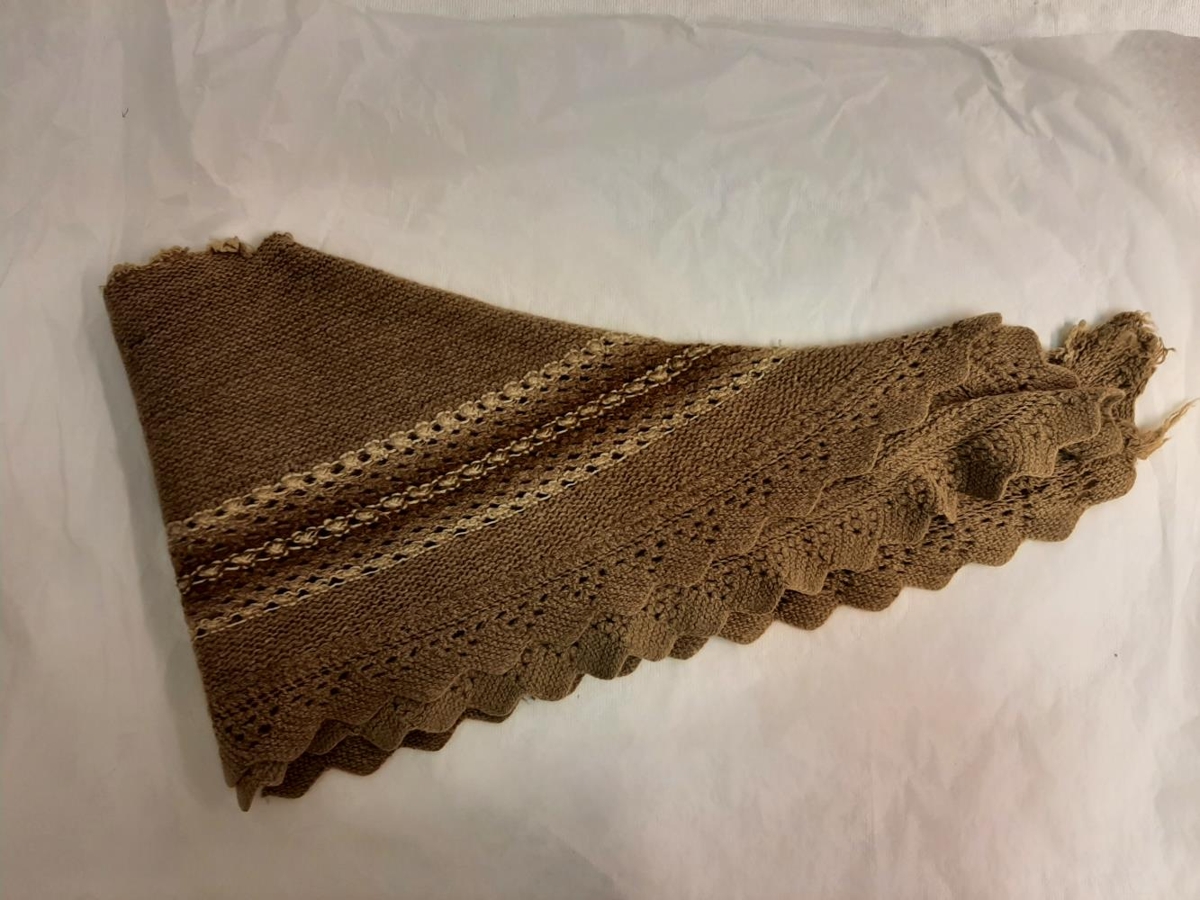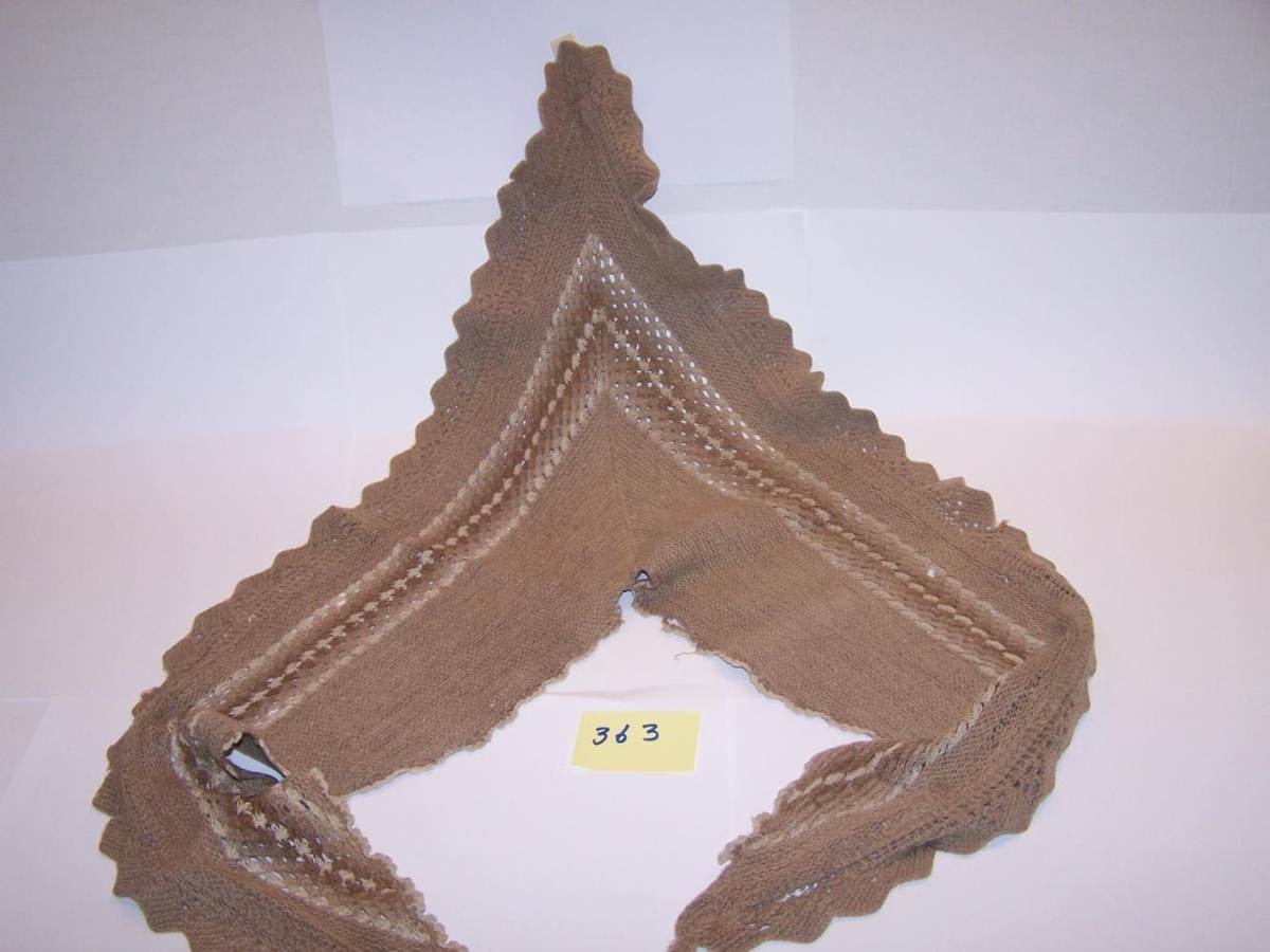 Þríhyrnan er í ljósmórauðum lit með bekk í hvítum og mórauðum litum. Hvítur jaðar að ofan. Allmikið slitin.