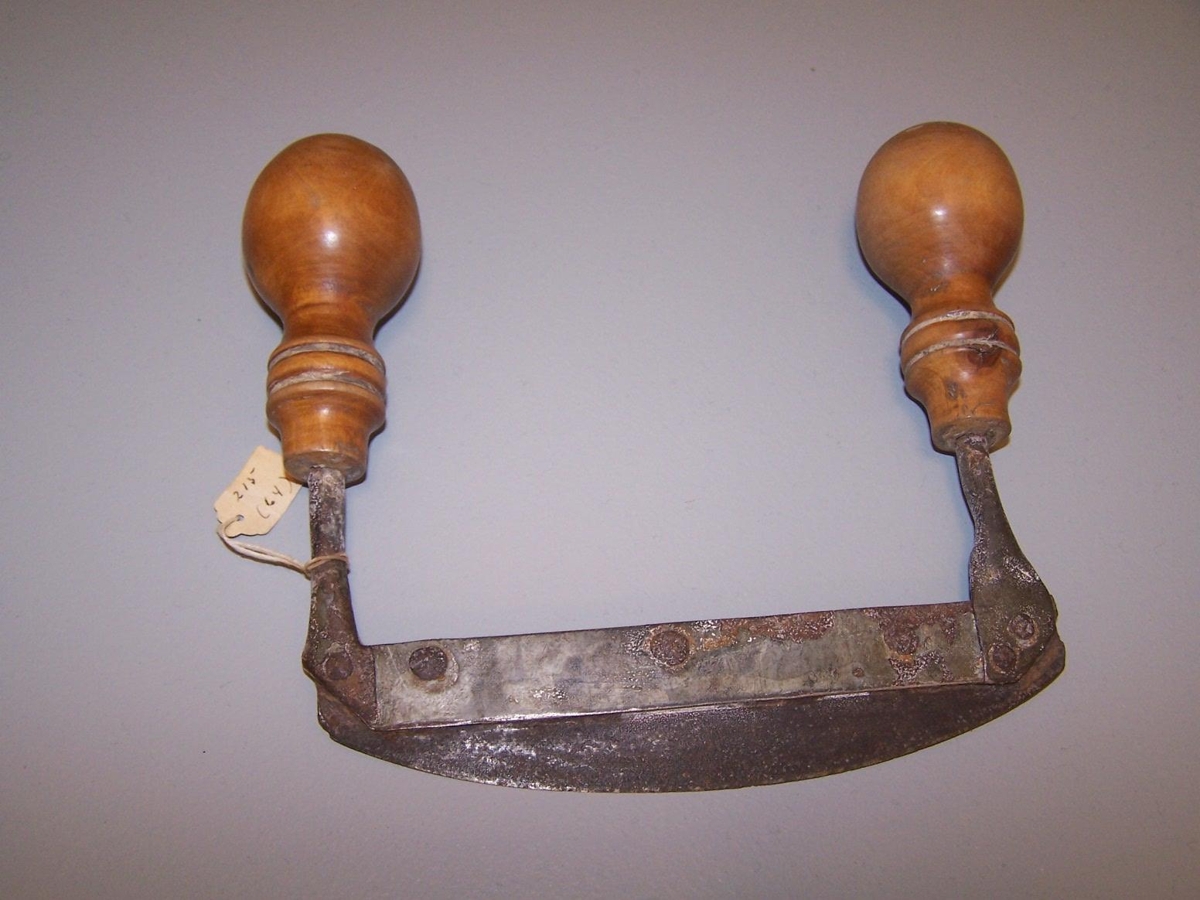 og póleruð, bakki og tangar úr klápagyrði, blað úr ljáblaði. Blaðlengd
