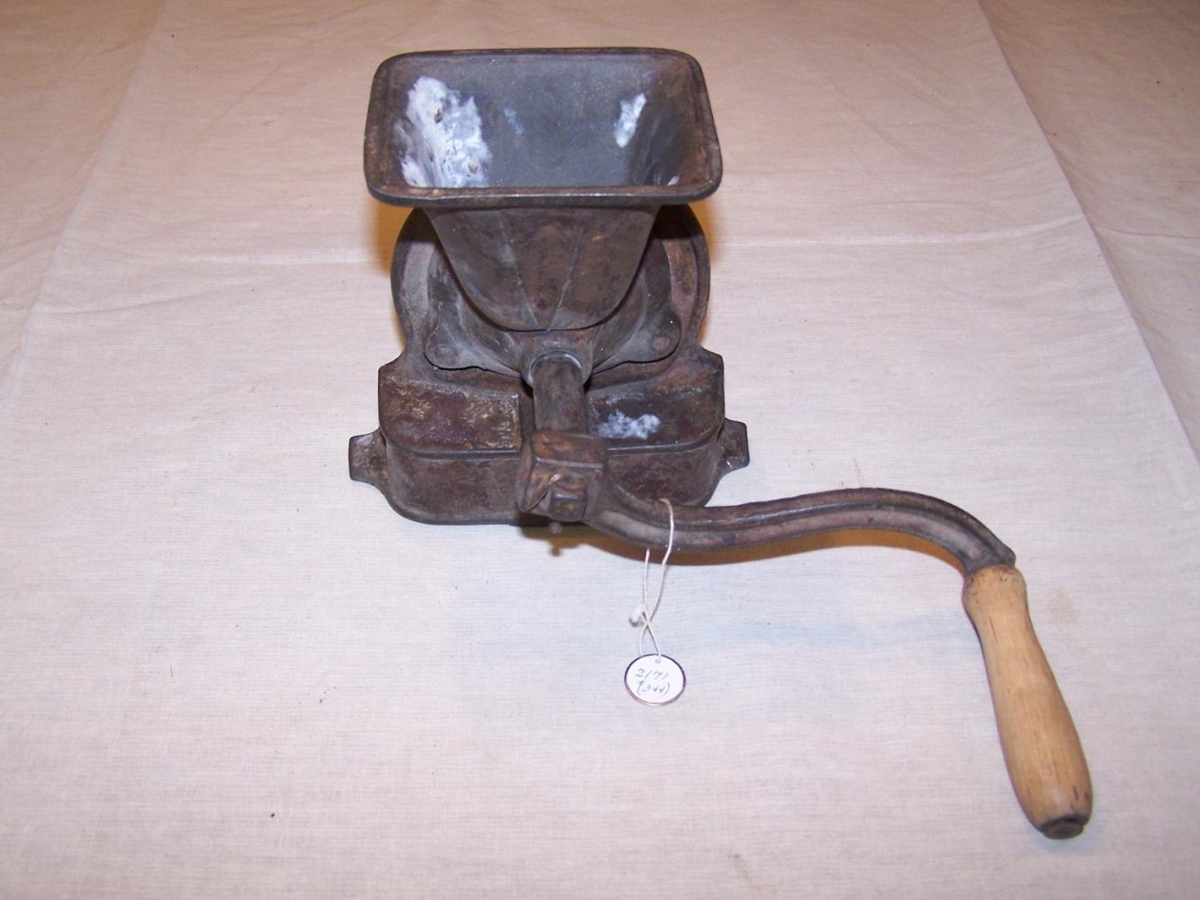 Kaffikvörn. Merki FN°1 - mjög gömul úr búi Bjargar Einarsdóttur og sr. Hjörleifs Einarssoanr prófasts á Undirfelli í Vatnsdal. Síðar var hún í eigu sonar þeirra, sr. Tryggva Hjörleifssonar Kvaran og Önnu Kvaran á Mælifelli í Skagafirði og síðast í eigu dóttur þeirra, Hjördísar Bjargar Tryggvadóttur Kvaran og Finns Kristjánssonar kaupfélagsstjóra á Húsavík.