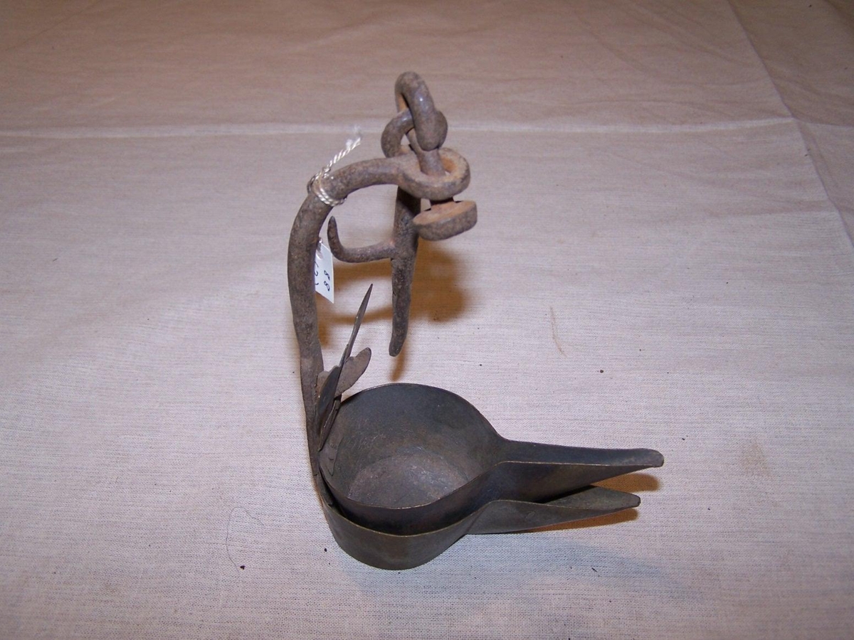 L.pönnu 10.2 cm. Fremur lítll. Tvöfaldur, undir- og yfirlampi úr þunnu látúni.