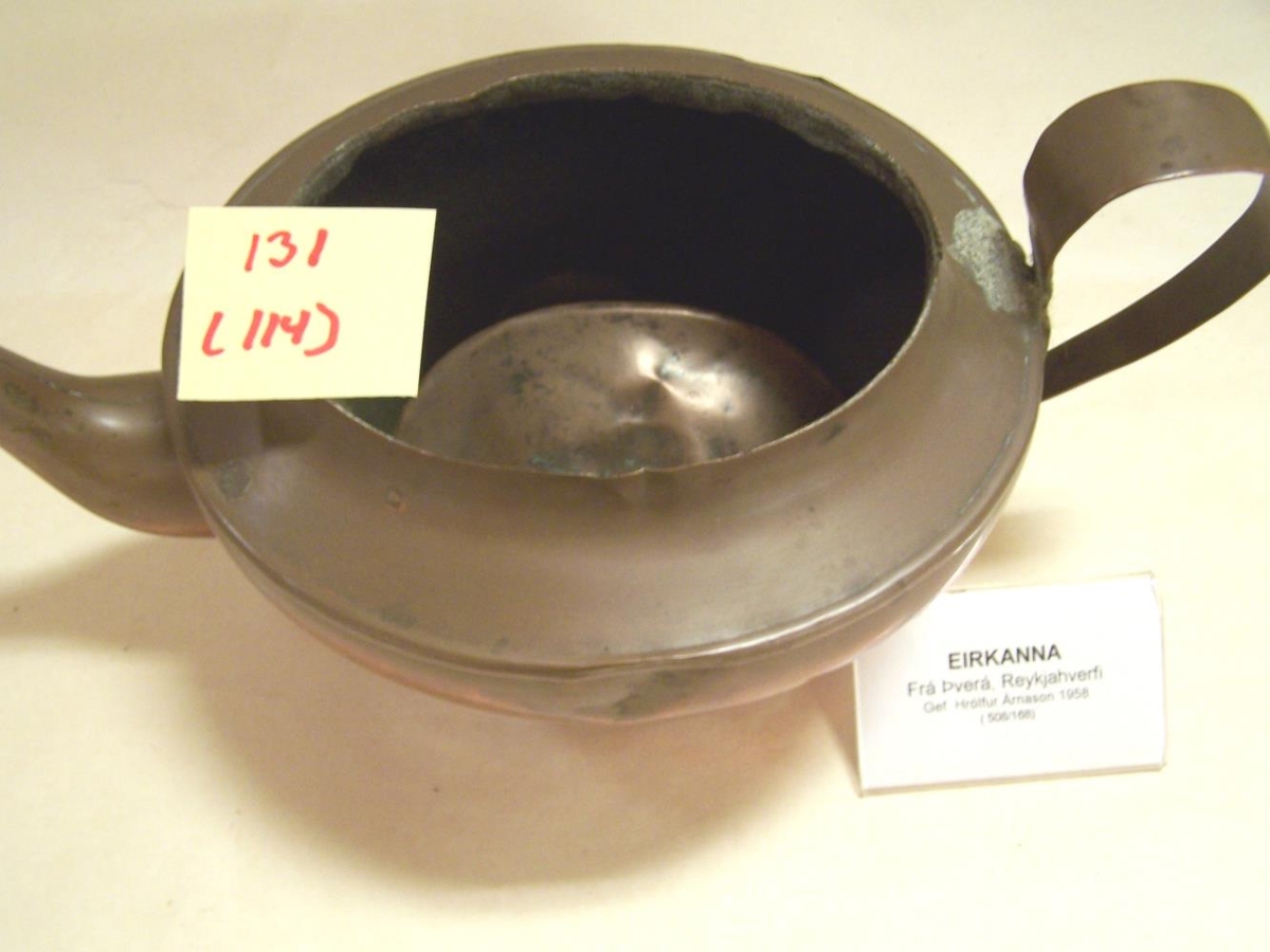 ca 16 cm á lengd og 14 cm á breidd. Hæð 11 cm. Ketillinn er loklaus.