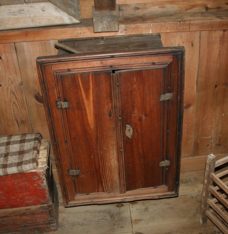 Skápurinn 59.5 x 39.5 og 25 cm djúpur (hillubreidd). Um skápinn að framan er breiður rammi 73 x 73 cm utanmál. Tvær hurðir. Hillur 3 og grunn skúffa neðst. Skápurinn hefur verið festur á vegg. Var áhaldaskápur Jóhannesar Jónssonar á Sandhaugum.