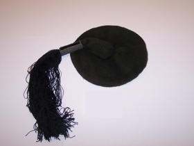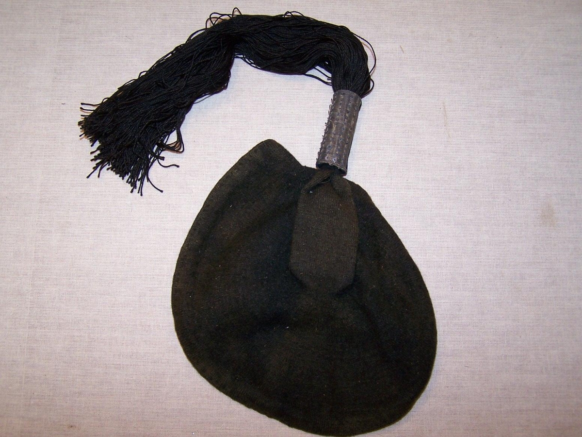 Skotthúfan er úr svörtu bandi, prjónuð. Hólkur balderaður með silfurþræði í svart flauel. Skúfur stuttur, nálægt 24 cm úr svörtu garni. Húfan djúp. Var húfa Þuríðar Sigurgeirsdóttur frá Baldursheimi (amma gefanda).