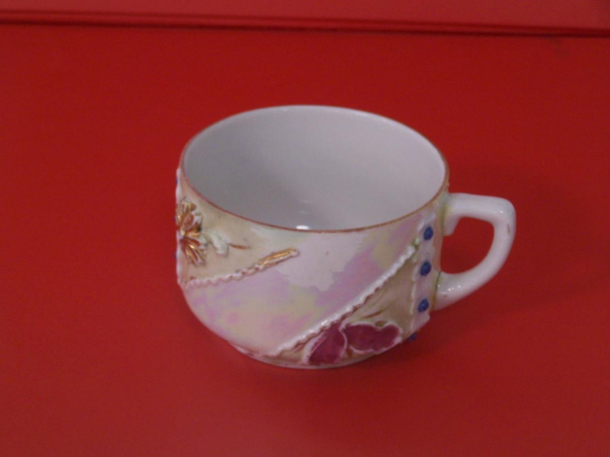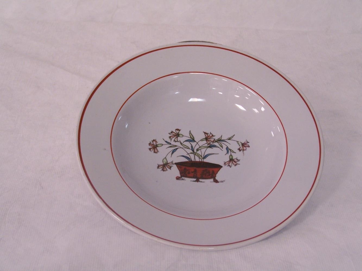 Yfirdiskar 4 + 1. Fjórir úr eigu Árna Flóvetnssonar og Kristjönu Helgadóttur í Hörgsdal. Árni d. 1914. Síðar í eigu Helga Árnasonar og Kristjönu Jóhannesdóttur í Hörgsdal. Einn diskurinn er keyptur árið 1942. Einnig sósukanna og tveir bollar með undirskálum (annar bollinn er brotinn)