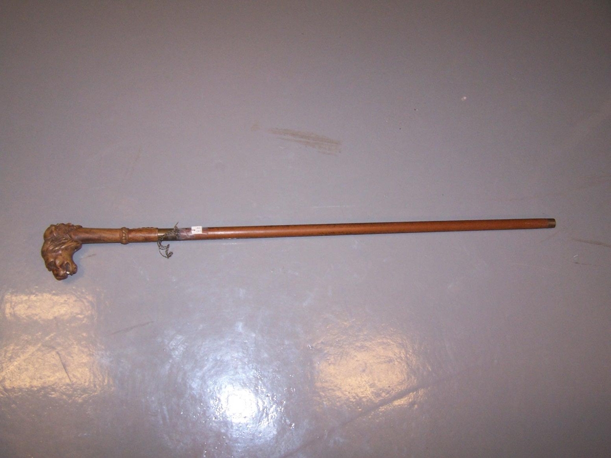sem gengur í lófann er útskorinn ljósnhaus með gapandi gini og tönnum (úr