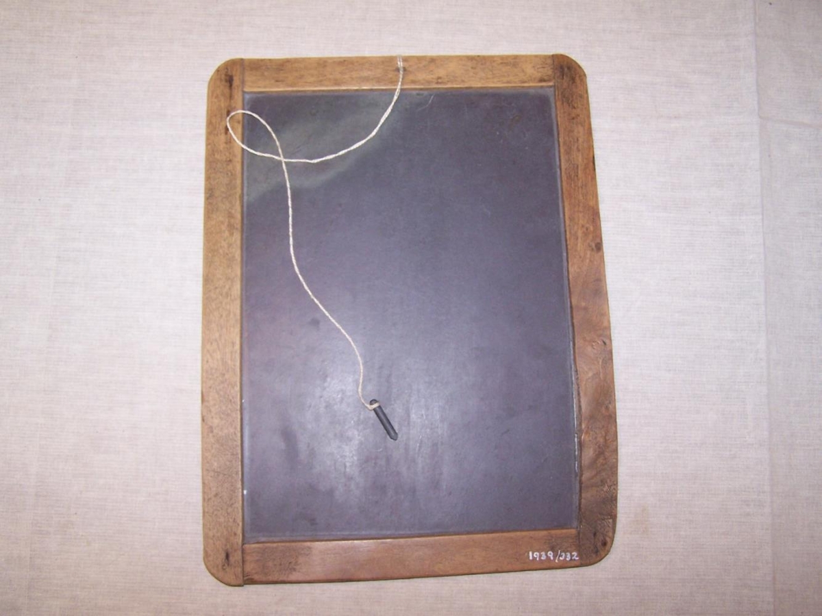 Griffilspjald, svart með tréramma - frá Sýrnesheimilinu í Aðaldal.