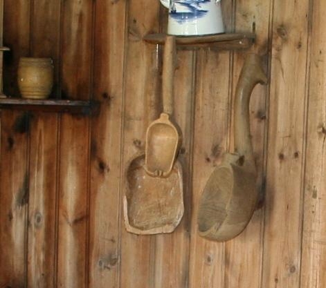 Skaftlengd 24 cm. blaðlengd 20 cm, breidd 15 cm. Blaðið þvert fyrir að framan, nokkuð skemmt (1955). (Þetta er stóra ausan vinstra megin á myndinni)