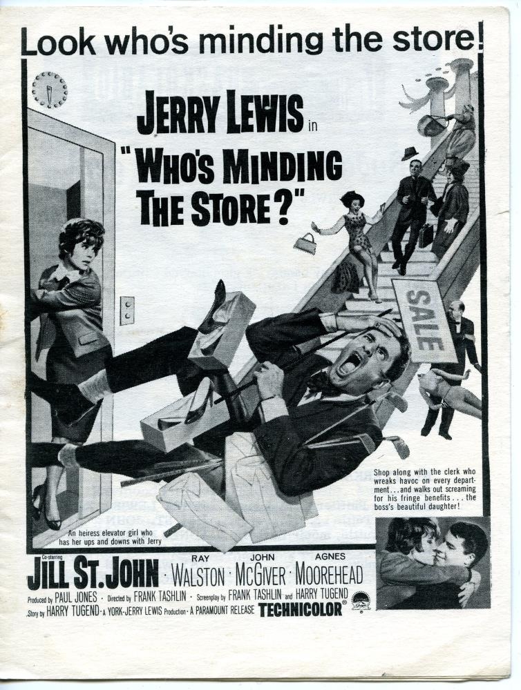 Forsíða: "Look who's minding the store! Jerry Lewis in "Who's Minding the Store?""